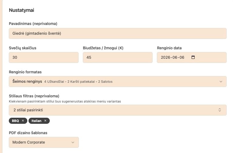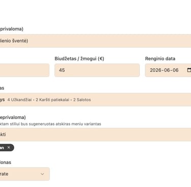 Svarbiausia CaterYzi vertė nėra tik pasiūlymų generatorius. Jį galite naudoti dviem būdais. Pirmiausia kaip įrankį. Greitai suformuojate pasiūlymus ir siunčiate klientams iš savo kanalų. Antras – leidžiate platformai dirbti už jus. Tokiu atveju klientai ateina per CaterYzi, o sistema pagal jų užklausas pateikia jūsų pasiūlymus. Jei jau susikėlėte savo meniu ir naudojate pasiūlymų generatorių – jūs praktiškai esate pasiruošę. Lieka vienas žingsnis – prijungti mokėjimus (Stripe), ir jūs jau esate žaidime. Nuo to momento platforma gali generuoti užklausas ir siųsti pasiūlymus už jus. Net tada, kai jūs tuo metu nedirbate.