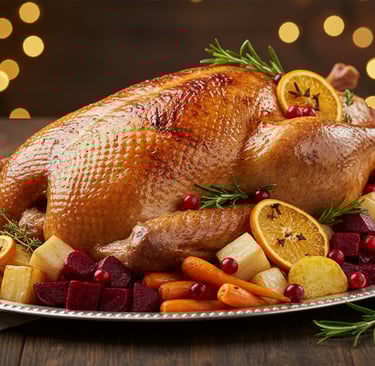 Ši žąsis jau paruošta šefo virtuvėje – marinuota, subalansuoto skonio, skirta kepti visą orkaitėje.