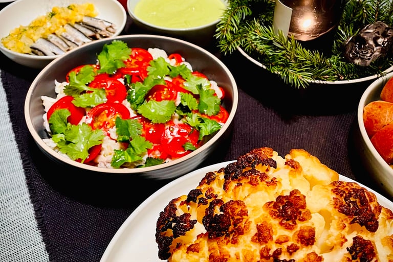 Geriau mažiau lėkščių, bet daugiau erdvės – tada kiekvienas patiekalas atsiskleidžia, o stalas atrodo ramus ir šventiškas.